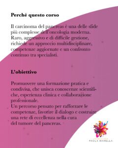 Grazie a questa iniziativa, Fondazione Paola Marella punta a diffondere competenze specialistiche in tutta Italia e a garantire cure sempre più aggiornate, multidisciplinari e di qualità per i pazienti affetti da carcinoma del pancreas.